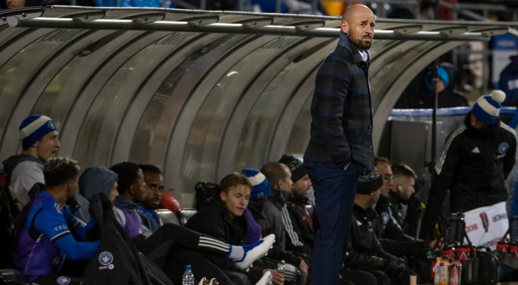 CF Montreal head coach Laurent Courtois looks on during second half MLS soccer action against FC Cincinnati, in Montreal, Saturday, April 13, 2024. (Peter McCabe/CP)